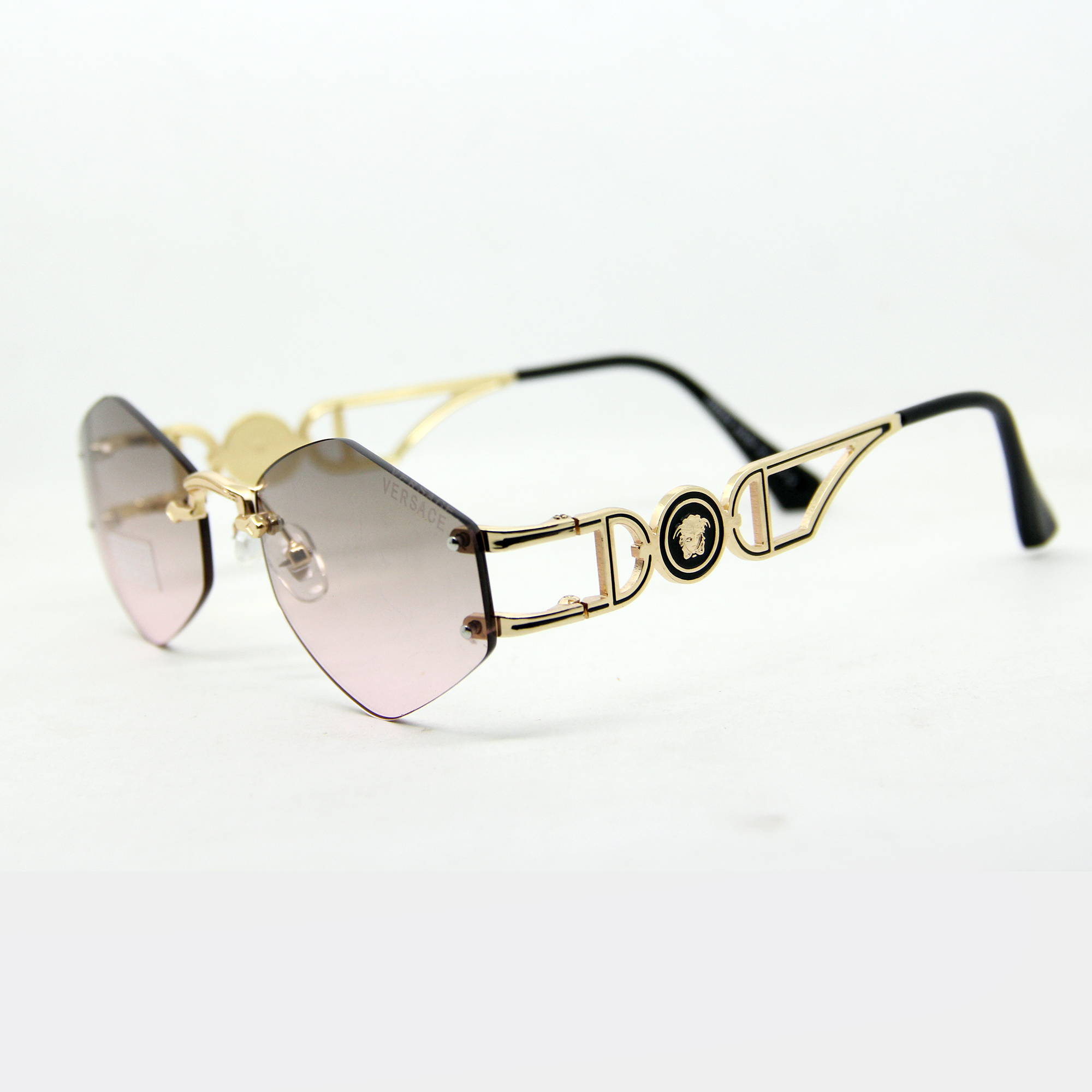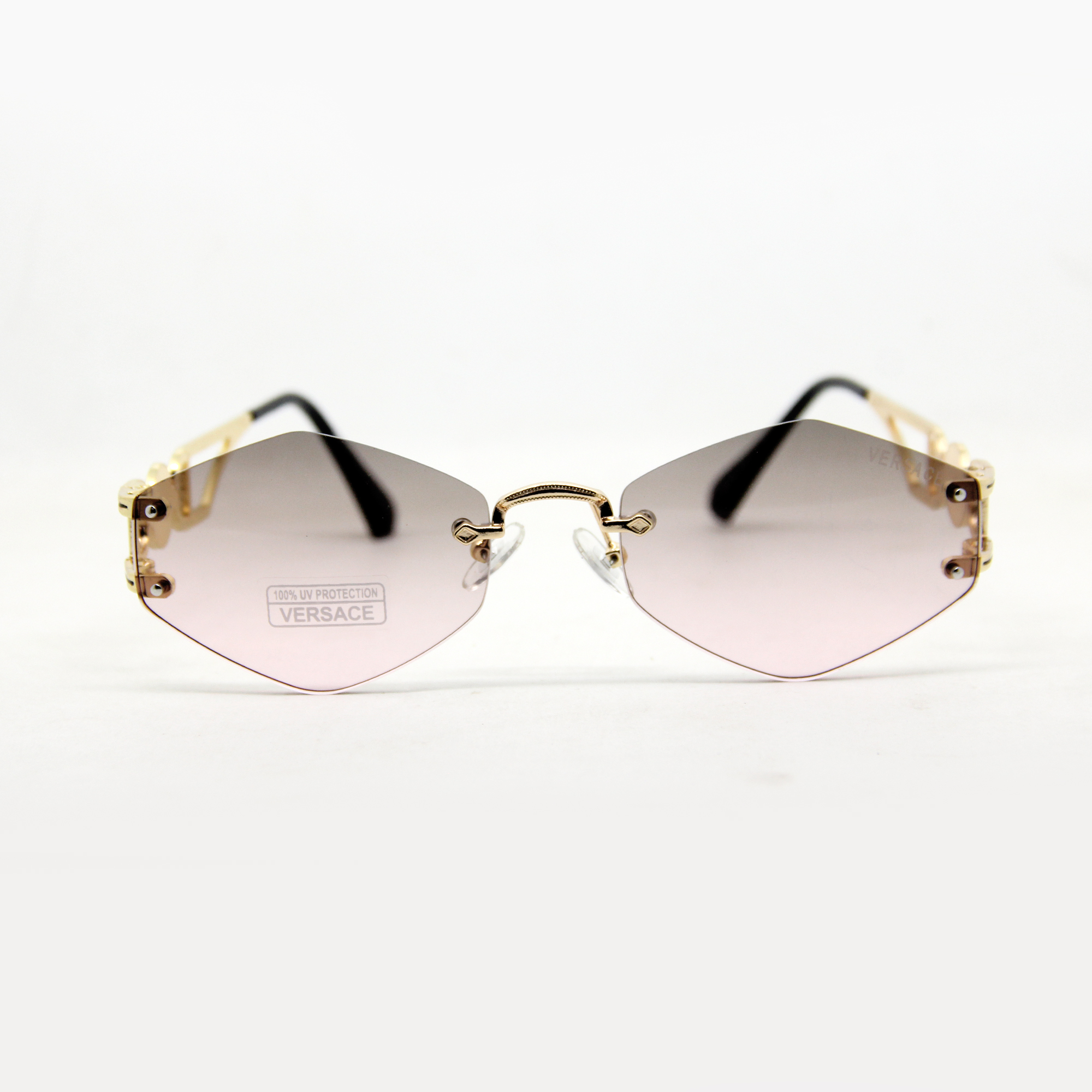 Versace Rimless Women’s Sunglasses are a striking blend of elegance and bold fashion. Designed with a lightweight rimless silhouette, these shades embody modern glamour while offering all-day comfort. Finished with Versace’s signature detailing for a touch of iconic style, the high-quality lenses ensure full UV protection.